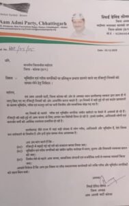 आम आदमी पार्टी ने छत्तीसगढ़ सरकार से तत्काल बढ़ी हुई रजिस्ट्री दरों को वापस लेने की मांग की