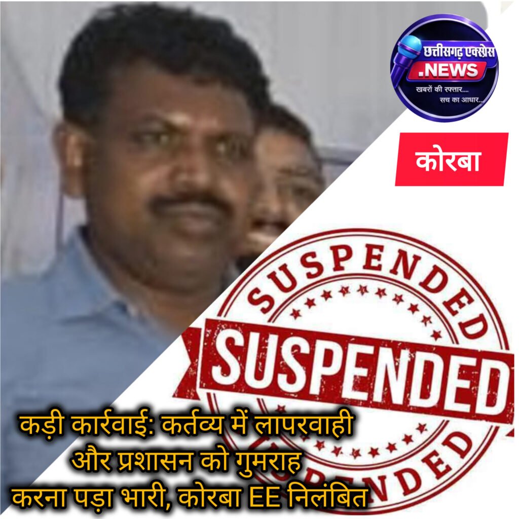 कड़ी कार्रवाई: कर्तव्य में लापरवाही और प्रशासन को गुमराह करना पड़ा भारी, कोरबा EE निलंबित