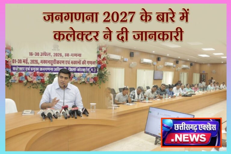 कोरबा 22 अप्रैल 2026/ छत्तीसगढ़ एक्सप्रेस: कलेक्टर एवं प्रमुख जनगणना अधिकारी कुणाल दुदावत की अध्यक्षता में आज आयोजित विस्तृत प्रेस वार्ता में जनगणना 2027 के सफल एवं प्रभावी संचालन को लेकर व्यापक जानकारी साझा की गई। कलेक्टर श्री दुदावत ने इस राष्ट्रीय महत्व के कार्य को आधुनिक तकनीक से सशक्त, पारदर्शी एवं नागरिक-केंद्रित बताते हुए इसे “विकास की आधारशिला” निरूपित किया।
