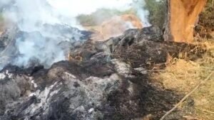 खलिहान में लगी भीषण आग, लगभग 200 क्विंटल धान जलकर राख