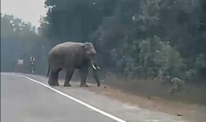 राजमार्ग से गुजर रहे यात्रियों के सामने जंगल से निकलकर हाथी सड़क पर आ गया। हाथी को सामने देख यात्रियों ने सूझबूझ का परिचय देते हुए तुरंत वाहन रोक दिया, जिससे बड़ा हादसा टल गया। कुछ देर तक हाथी सड़क पर ही खड़ा रहा, कुछ समय बाद हाथी स्वयं सड़क पार कर पास के जंगल की ओर लौट गया, जिसके बाद यातायात सामान्य हो सका।