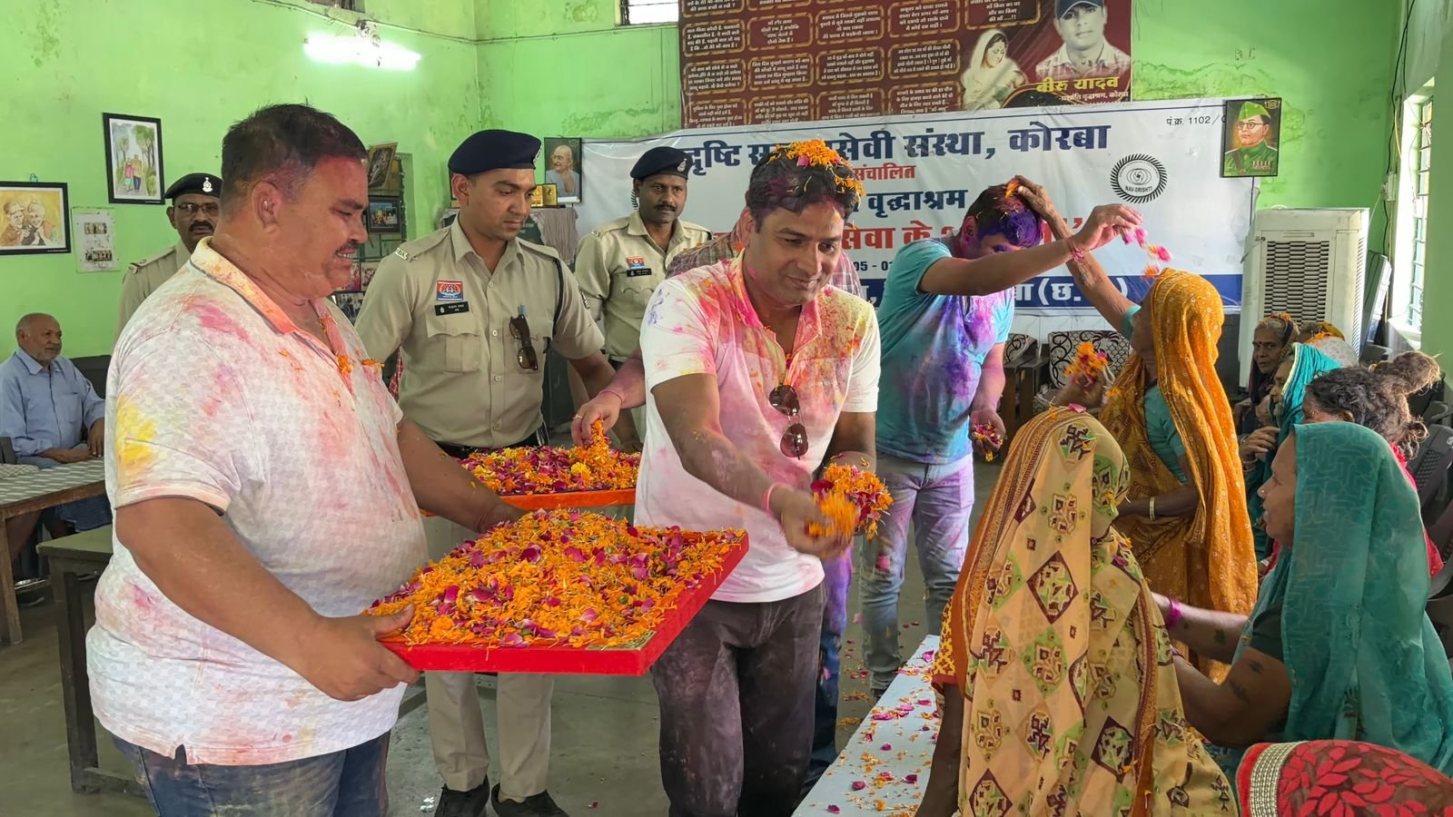 सर्वमंगला मंदिर के निकट स्थित प्रशांति वृद्धाश्रम में रह रहे बुजुर्ग अक्सर त्योहारों के मौके पर अपनों की कमी महसूस करते हैं। उनकी इसी पीड़ा को समझते हुए सर्वमंगला पुलिस चौकी द्वारा एक विशेष आयोजन किया गया। यहाँ पुलिसकर्मियों ने रंग-गुलाल के बजाय फूलों की होली खेलकर बुजुर्गों को सम्मान और अपनेपन का अहसास कराया।