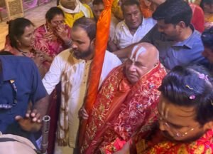 इस दौरान सर्वमंगला मंदिर के प्रबंधक, राजपुरोहित नन्हा ( नमन ) पाण्डेय एवं मयंक पांडे ने जगद्गुरु रामभद्राचार्य एवं मंत्री लखन लाल देवांगन का स्वागत किया।