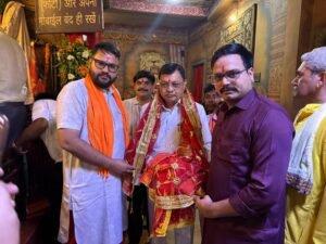 प्रसिद्ध कथा वाचक जगद्गुरु रामभद्राचार्य एवं प्रदेश के उद्योग मंत्री लखन लाल नें टेका माता