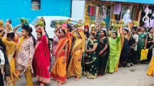 जिसमें बड़ी संख्या में श्रद्धालु शामिल हुए। समाज की महिलाओं और श्रद्धालुओं ने सिर पर कलश धारण कर भक्ति गीतों के बीच पदयात्रा की। यह यात्रा सर्वमंगला मंदिर घाट पहुंची, जहां मंत्रोच्चार के बीच पवित्र जल भरा गया। इसके पश्चात पुनः यात्रा मंदिर पहुंची, जिससे पूरा क्षेत्र ‘मां शाकंभरी’ के जयकारों से गूंज उठा।