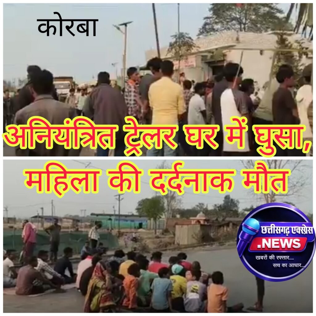 कोरबा/ कोरबा-पश्चिम के हरदीबाजार थाना क्षेत्र अंतर्गत आने वाले ग्राम मुड़ापार में आज दोपहर एक भीषण सड़क हादसा हो गया। बलौदा की ओर से आ रहे एक तेज रफ्तार और अनियंत्रित ट्रेलर ने सड़क किनारे स्थित एक घर को अपनी चपेट में ले लिया। इस हादसे में घर में मौजूद एक महिला की मौके पर ही मौत हो गई।