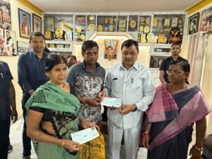उद्योग मंत्री लखन लाल देवांगन ने कुम्भ सडक हादसे में 10 मृतकों के परिवारों को दिया 1-1 लाख का चेक